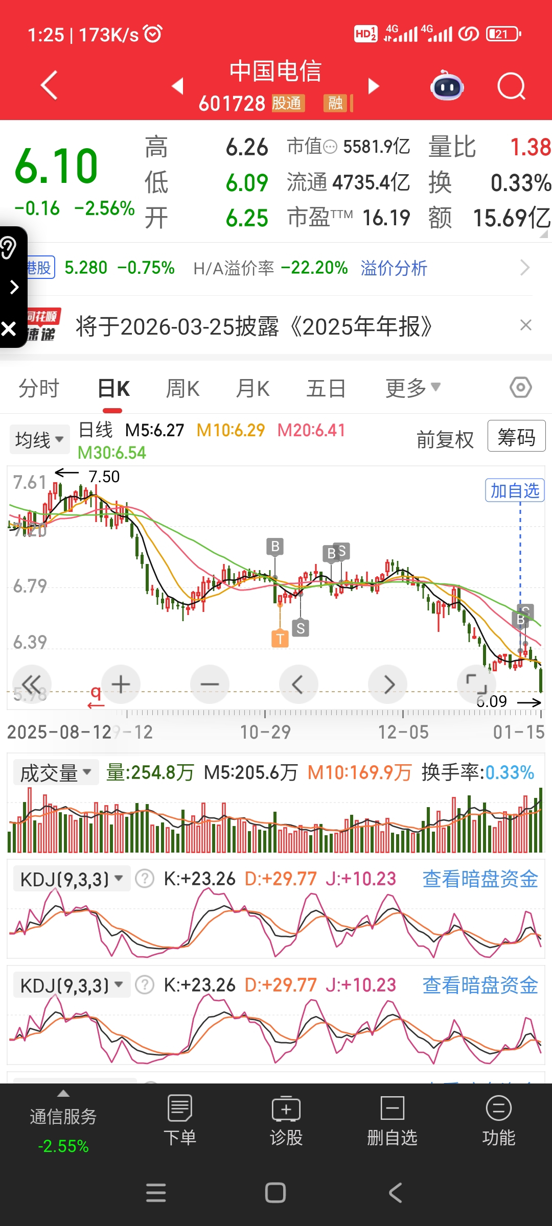 $中国电信(SH601728)$ 连续3次剥头皮,跑的快。幸亏没格局。下次5.8以下再看看有没有机会。