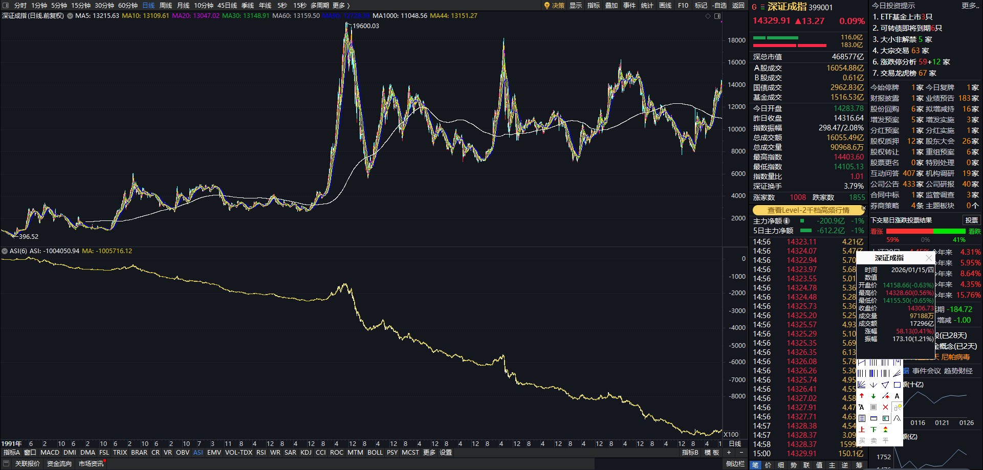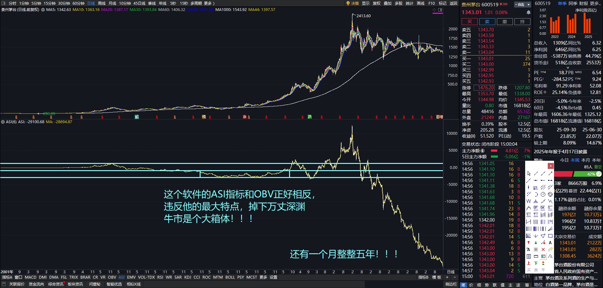 ASI有的软件参数6日均线和OBV正好相反,永远向下是的,通过他就清楚OBV了,不愁没大的反弹,只是不到时候!!!