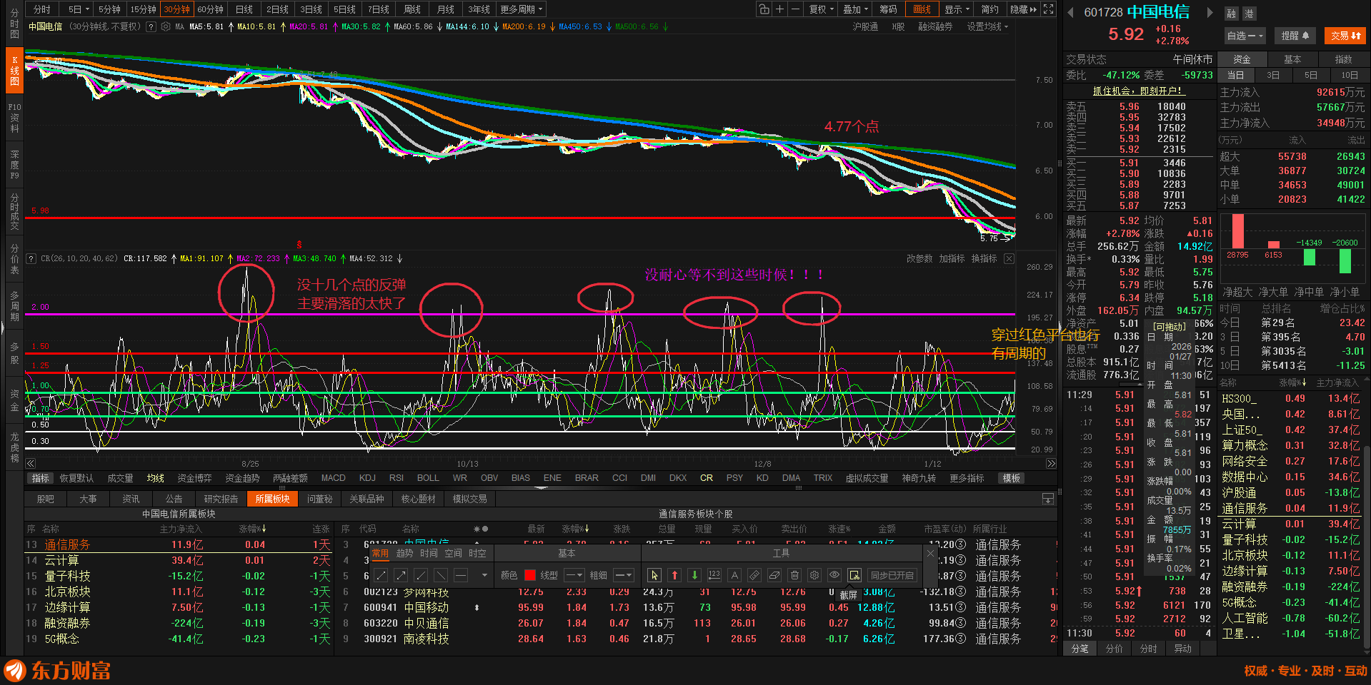 $中国电信(SH601728)$ 十五分钟线反抽能力弱的原因!!!