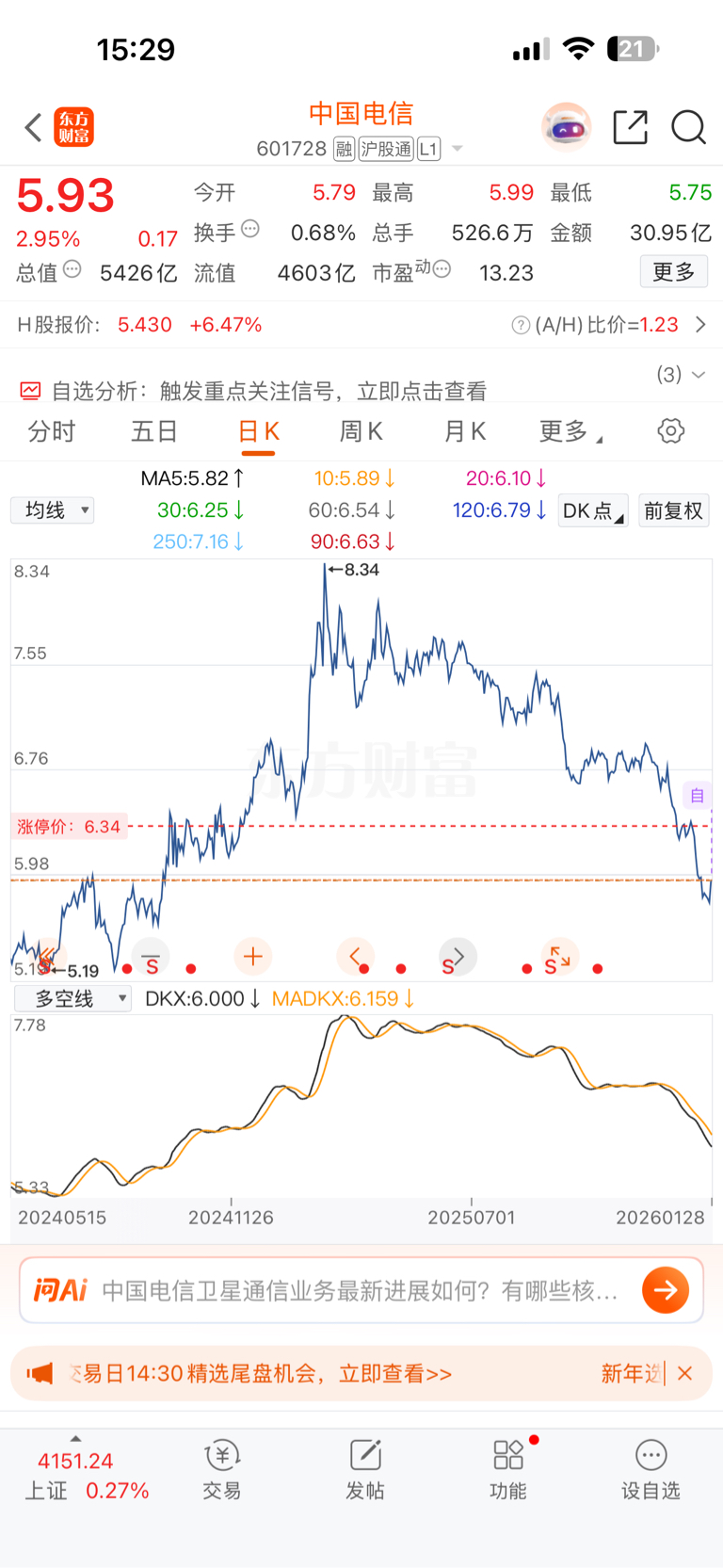 $中国电信(SH601728)$ 我把手上的黄金白银全抛了,第一次来这里,请多指教