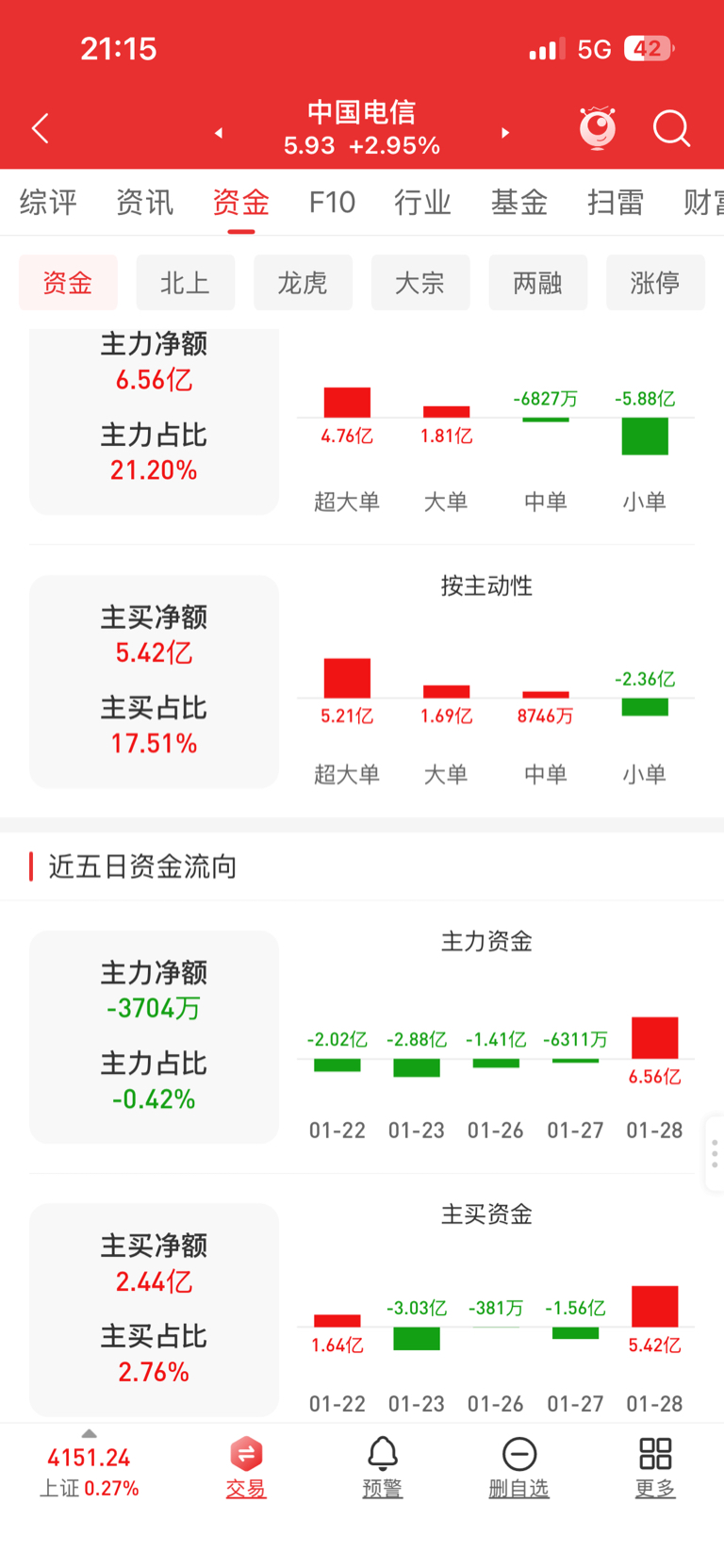 $中国电信(SH601728)$ 明天看资金流入能否持续,今天是首次大额流入!