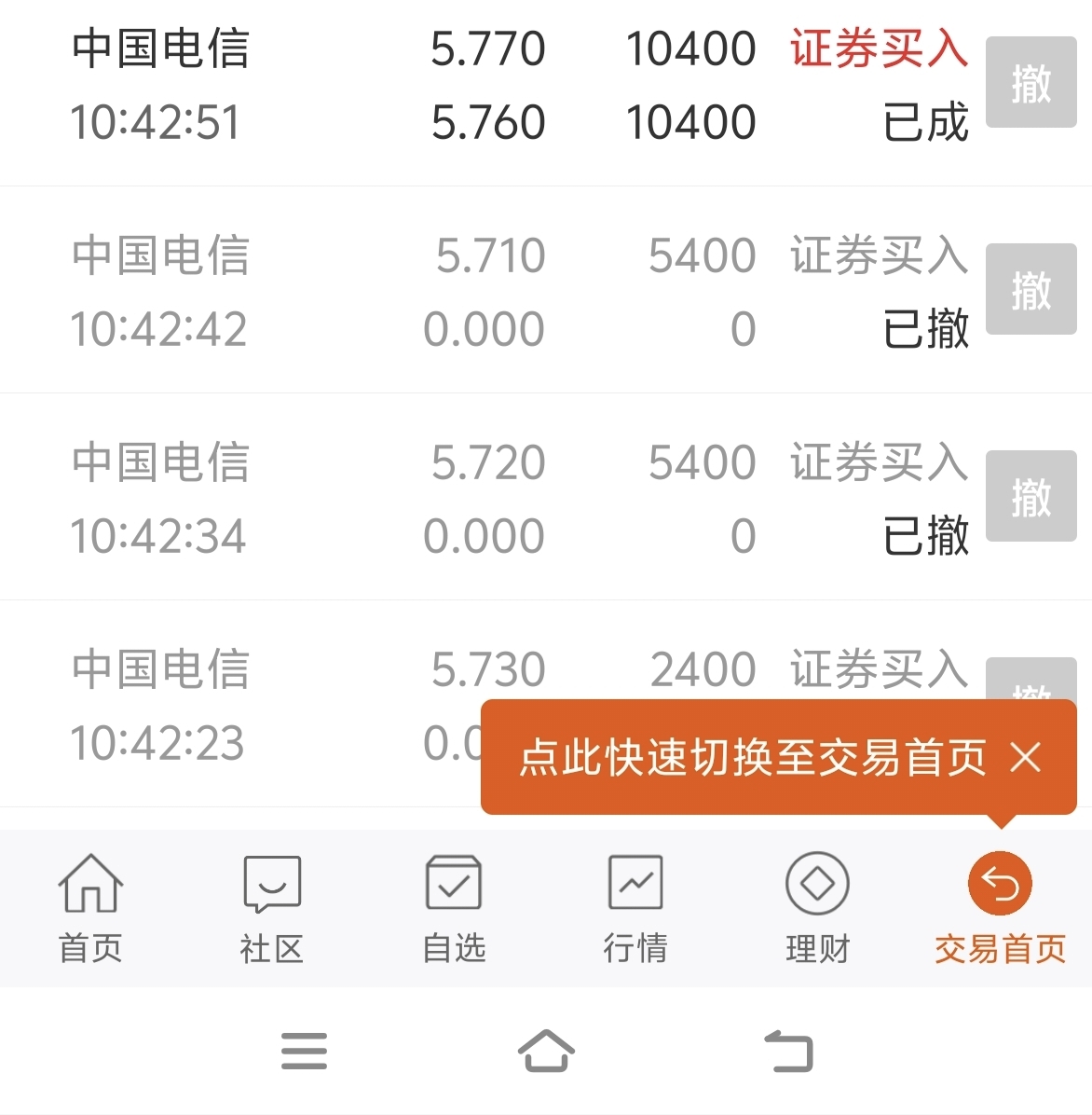 $中国电信(SH601728)$ 我去,nm,我明明挂5.7买一万股,怎么会写成5.77呢?这是怎么搞得?