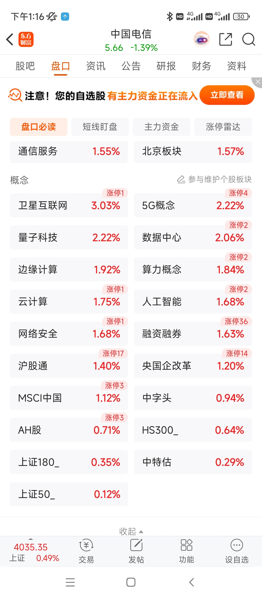 $中国电信(SH601728)$ 板块全红