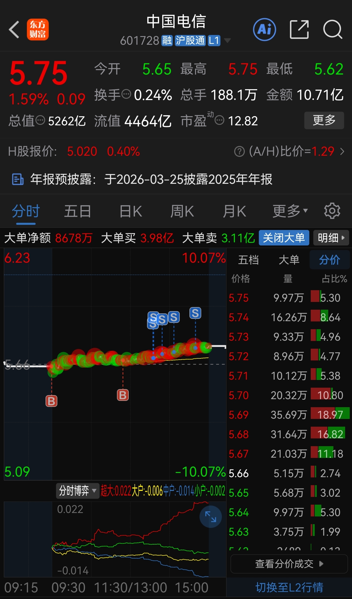$中国电信(SH601728)$ 明天高低走。