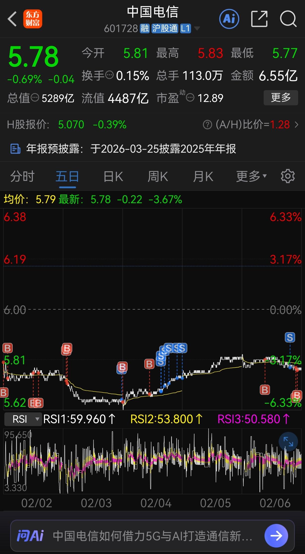 $中国电信(SH601728)$ 被牠当猴耍,好在中间出去玩儿了会可转债。.77接回了。