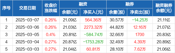 中国中车:融资净买入564.36万元,融资余额21.09亿元(03-07)