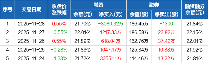中国中车:融资净偿还3080.32万元,融资余额21.7亿元(11-28)