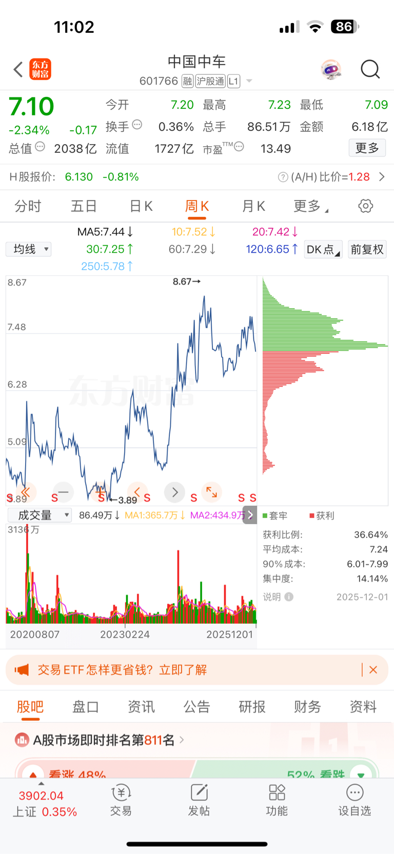 $中国中车(SH601766)$ 主要还是中车的获利盘太多套牢盘也太多,都不松动难搞了