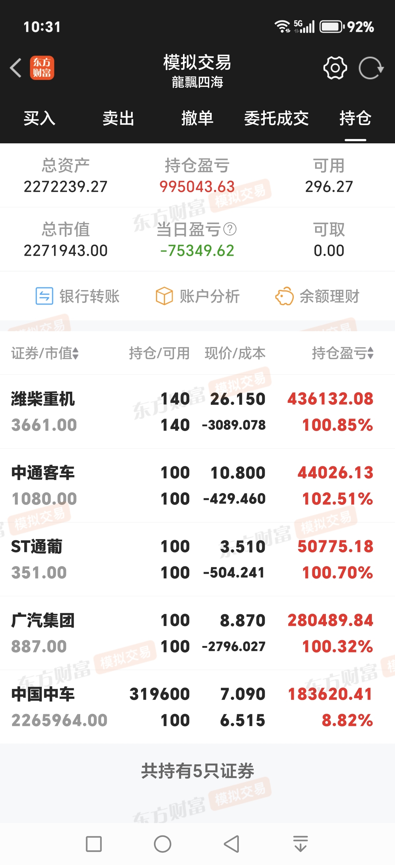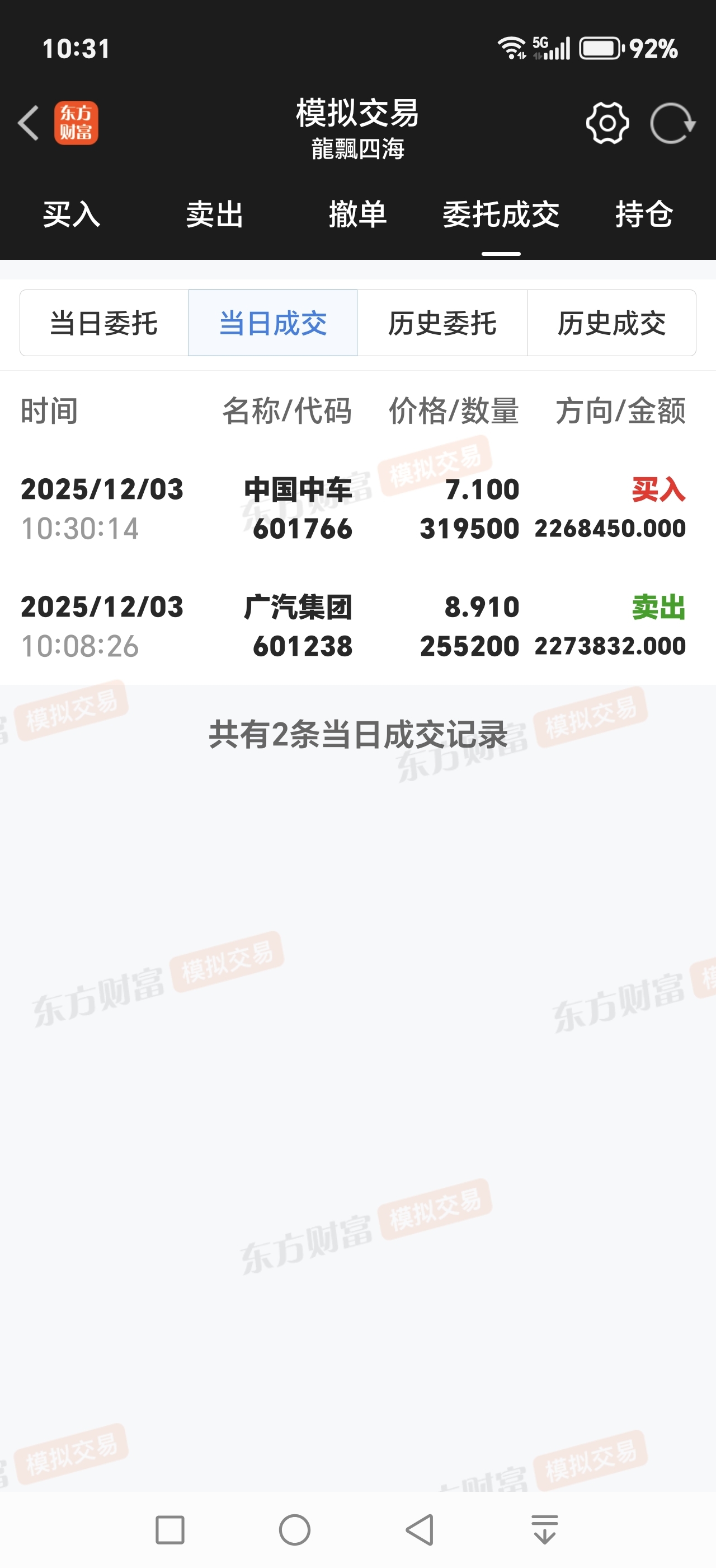 只能用模拟盘把广汽卖了帮中车股友加仓了。