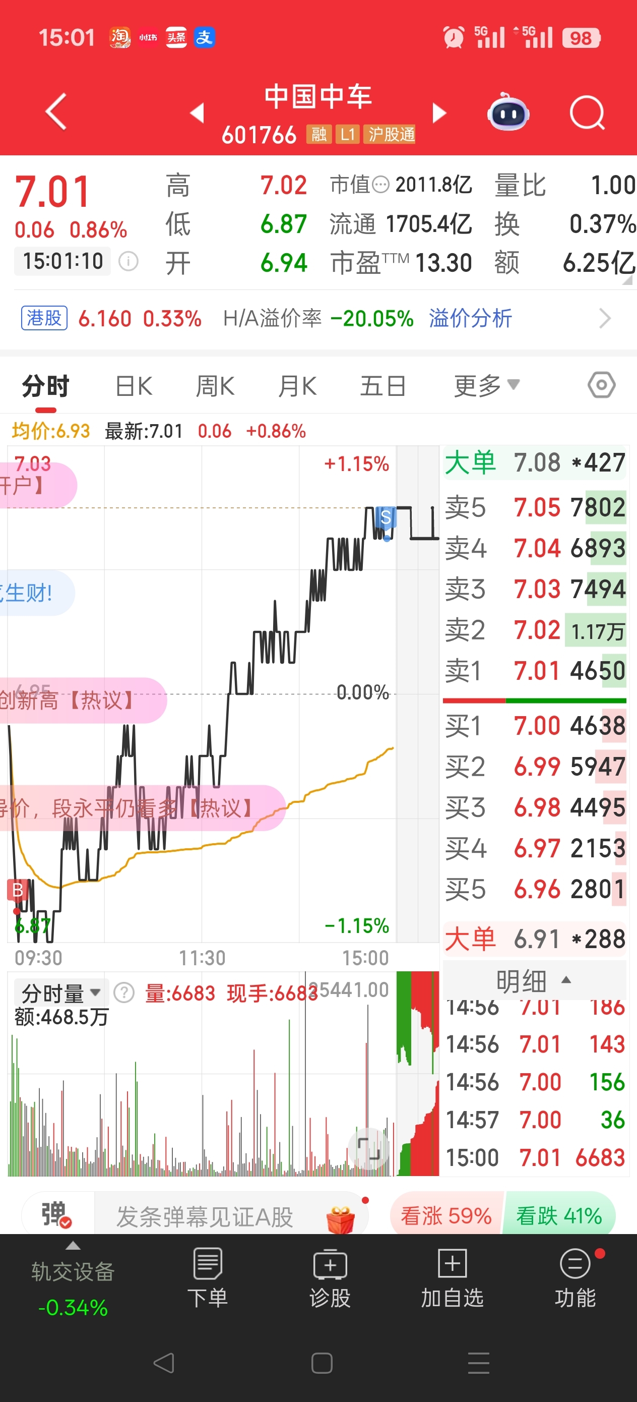 $中国中车(SH601766)$ 感谢主力