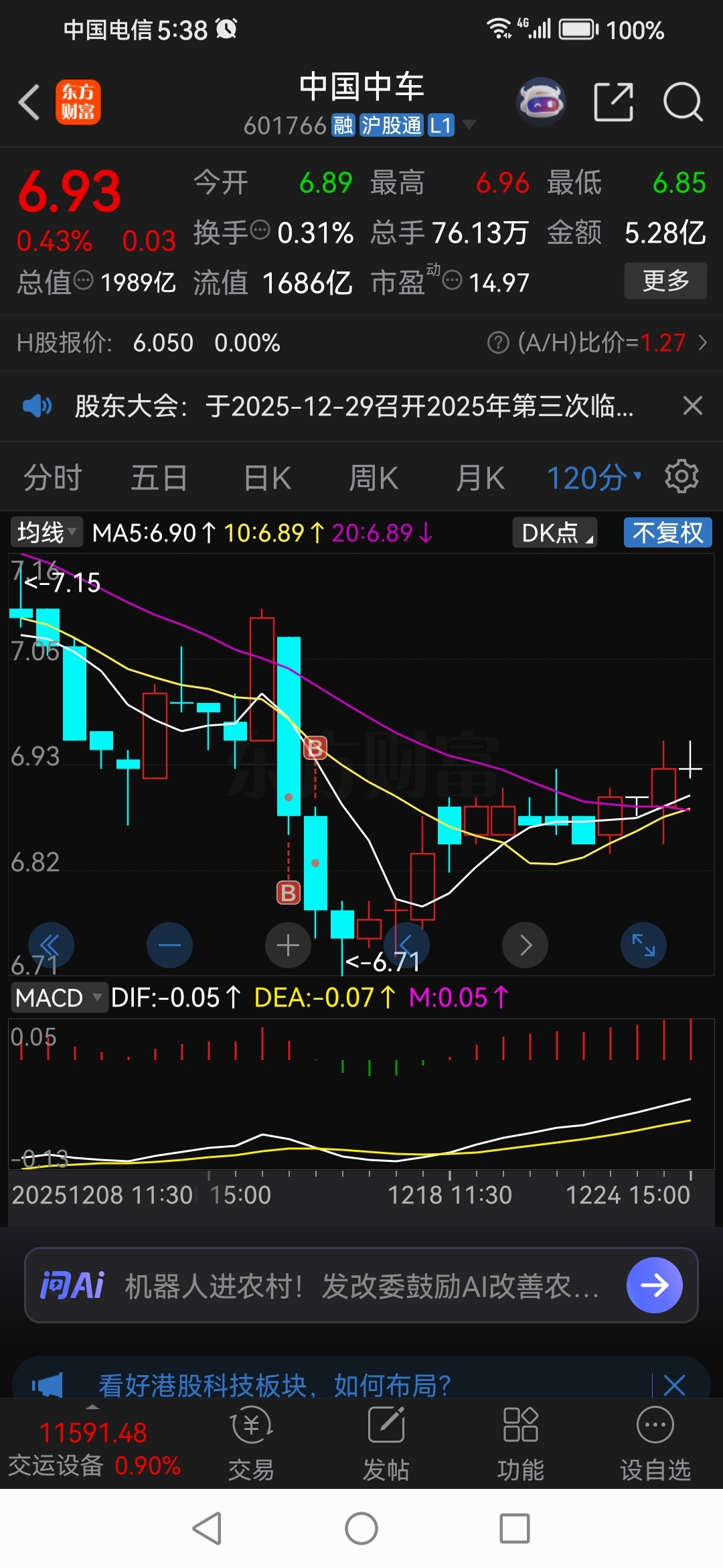 $中国中车(SH601766)$ 120分钟均线多头发散,要加速上涨了