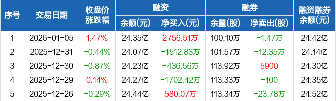中国中车:融资净买入2756.51万元,融资余额24.35亿元(01-05)