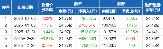 中国中车:融资净偿还795.67万元,融资余额24.27亿元(01-06)