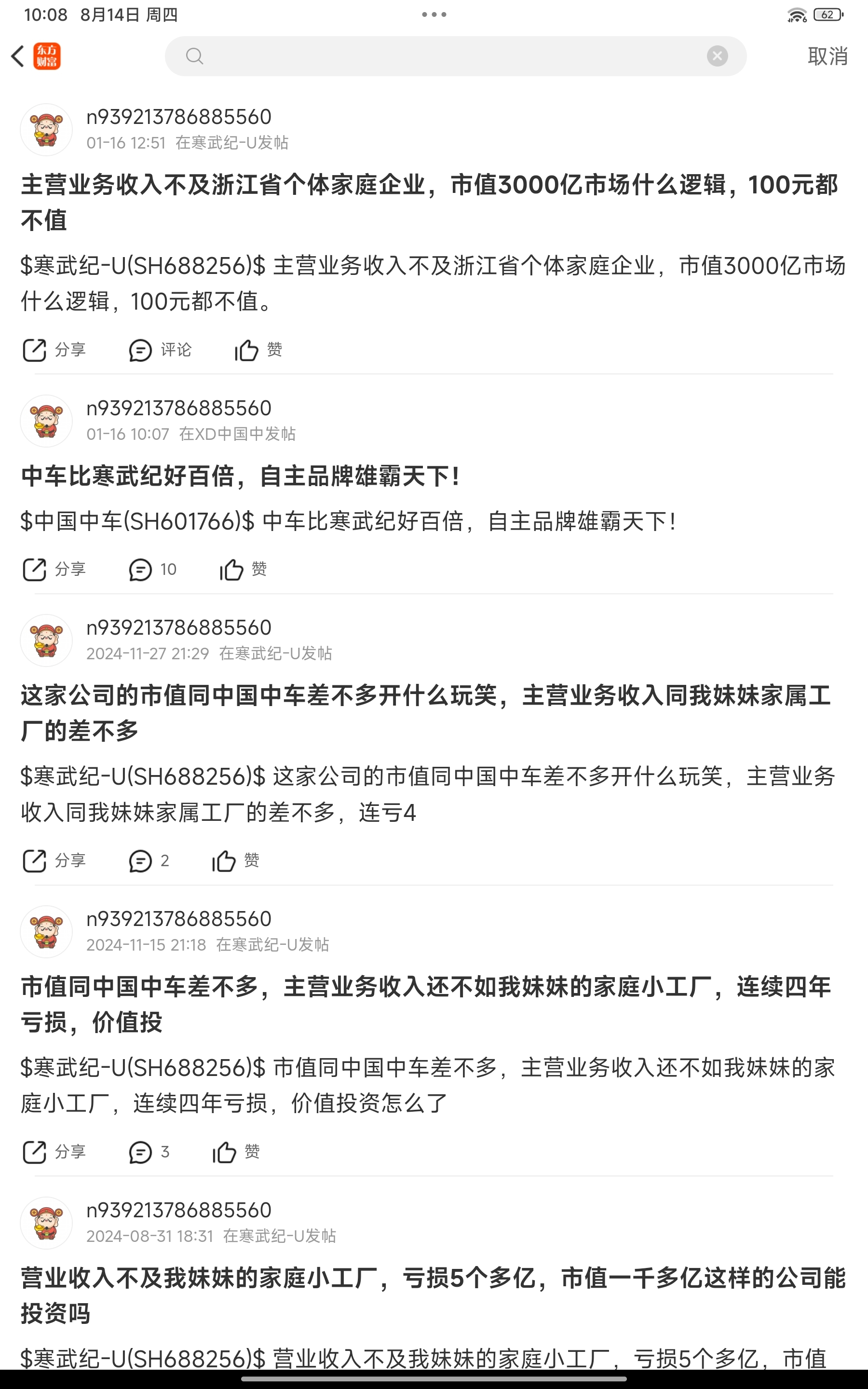 温馨提示: 1.根据《证券法》规定,禁止编造、传播虚假信息或者误导性信息,扰乱证券市场;2.用户在本社区发表的所有资料、言论等仅代表个人观点,与本网站立场无关,不对您构成任何投资建议。用户应基于自己的独立判断,自行决定证券投资并承担相应风险。《东方财富社区管理规定》