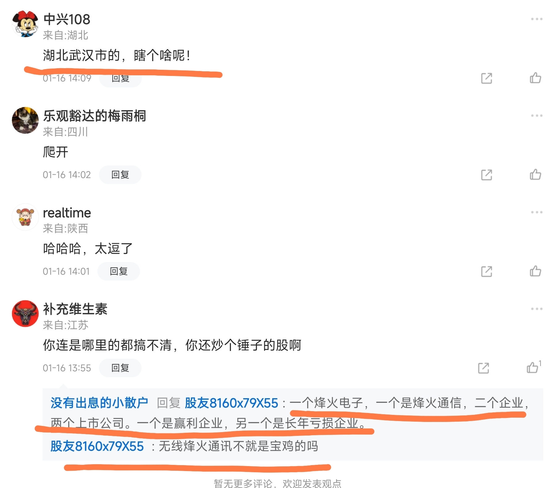 人怎么可以丢人现眼到这种地步了,为了唱空烽火通信,竟然把烽火电子拿出来一顿贬低,笑死人了。