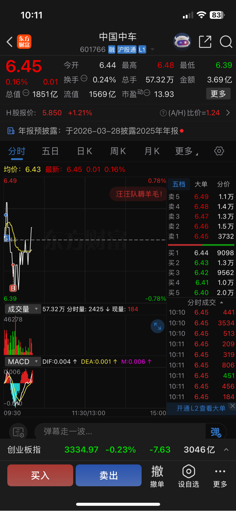 $中国中车(SH601766)$ 可以再跌下来让我加点仓吗?