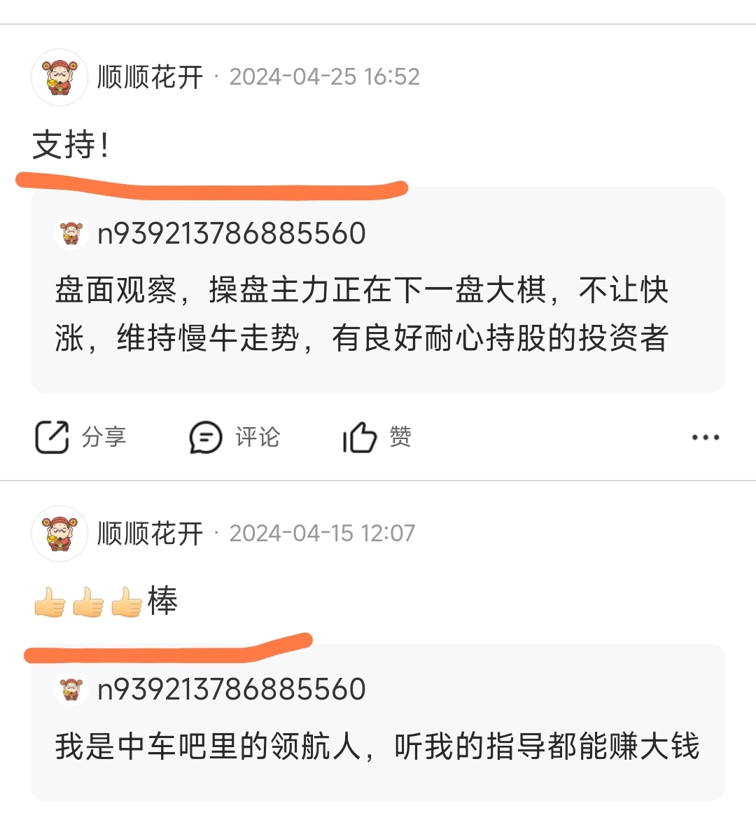 温馨提示: 1.根据《证券法》规定,禁止编造、传播虚假信息或者误导性信息,扰乱证券市场;2.用户在本社区发表的所有资料、言论等仅代表个人观点,与本网站立场无关,不对您构成任何投资建议。用户应基于自己的独立判断,自行决定证券投资并承担相应风险。《东方财富社区管理规定》