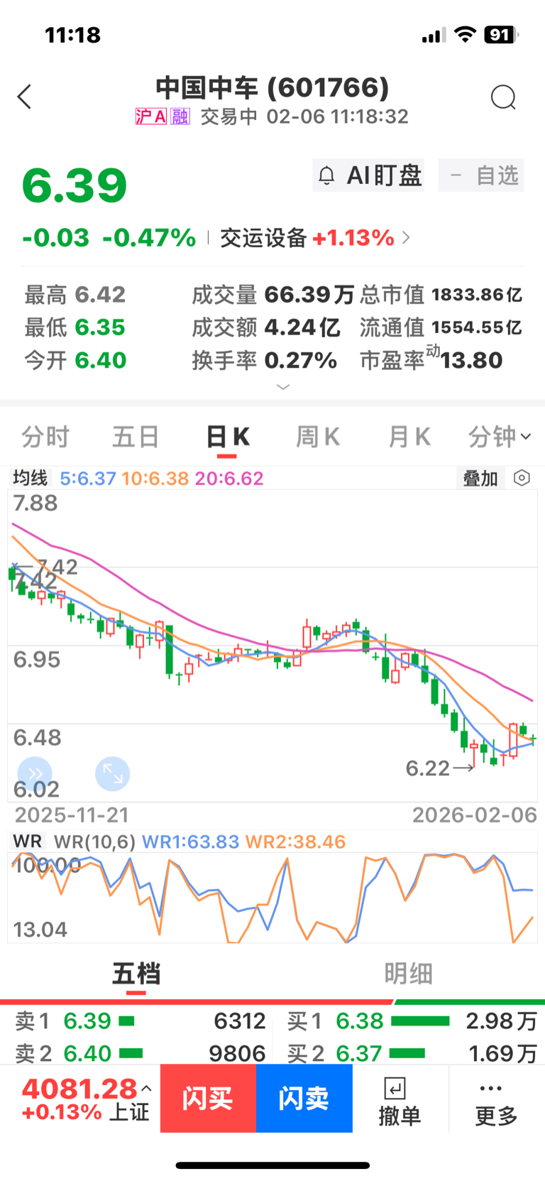 $中国中车(SH601766)$ 大盘拉不动,板块拉不动,真踏马讽刺。