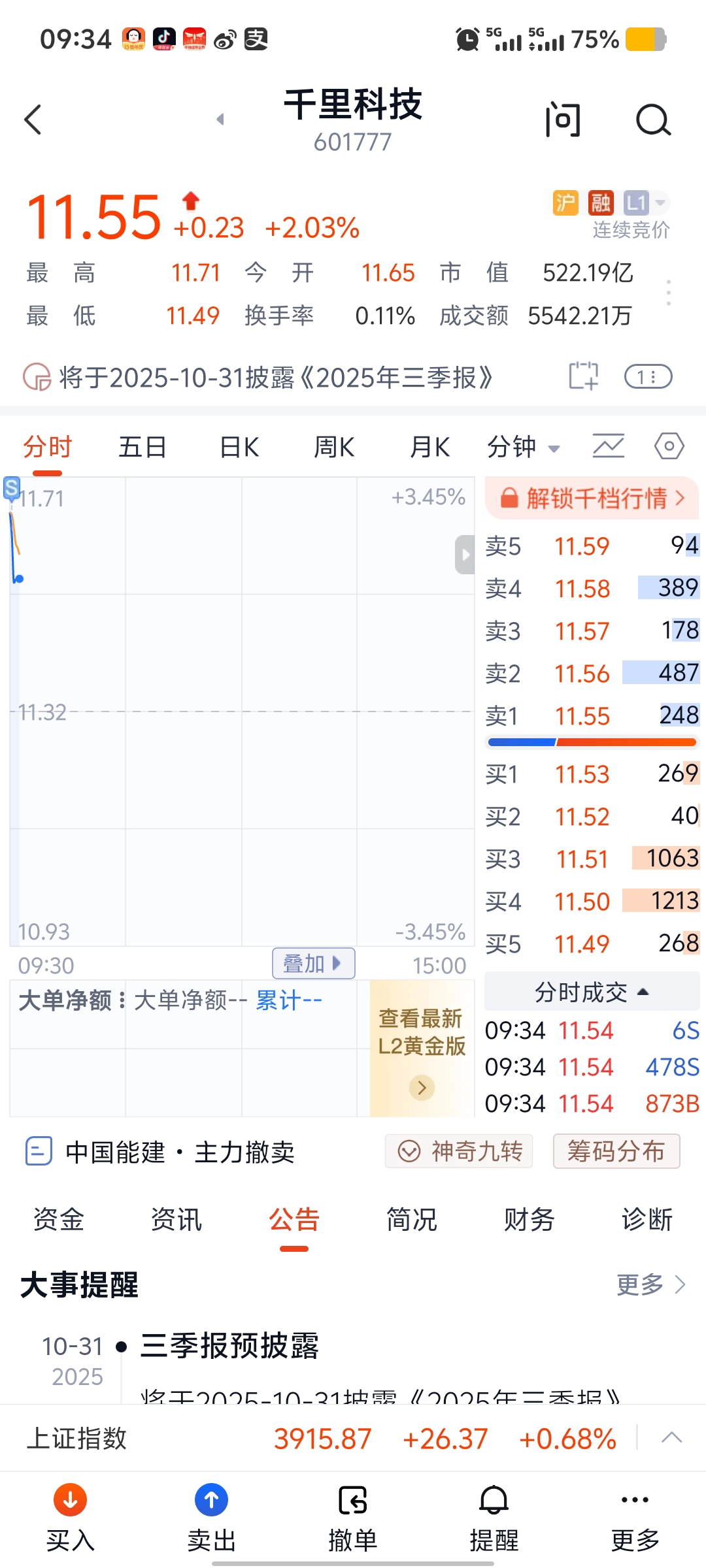 $千里科技(SH601777)$ 11.7成功踢了昨天的