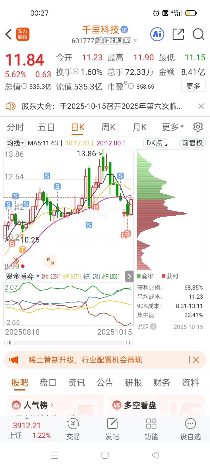 $千里科技(SH601777)$ 16号挂12.5必能出手,先减半仓看能否做个T