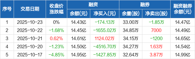 千里科技:融资净偿还174.13万元,融资余额14.43亿元(10-23)