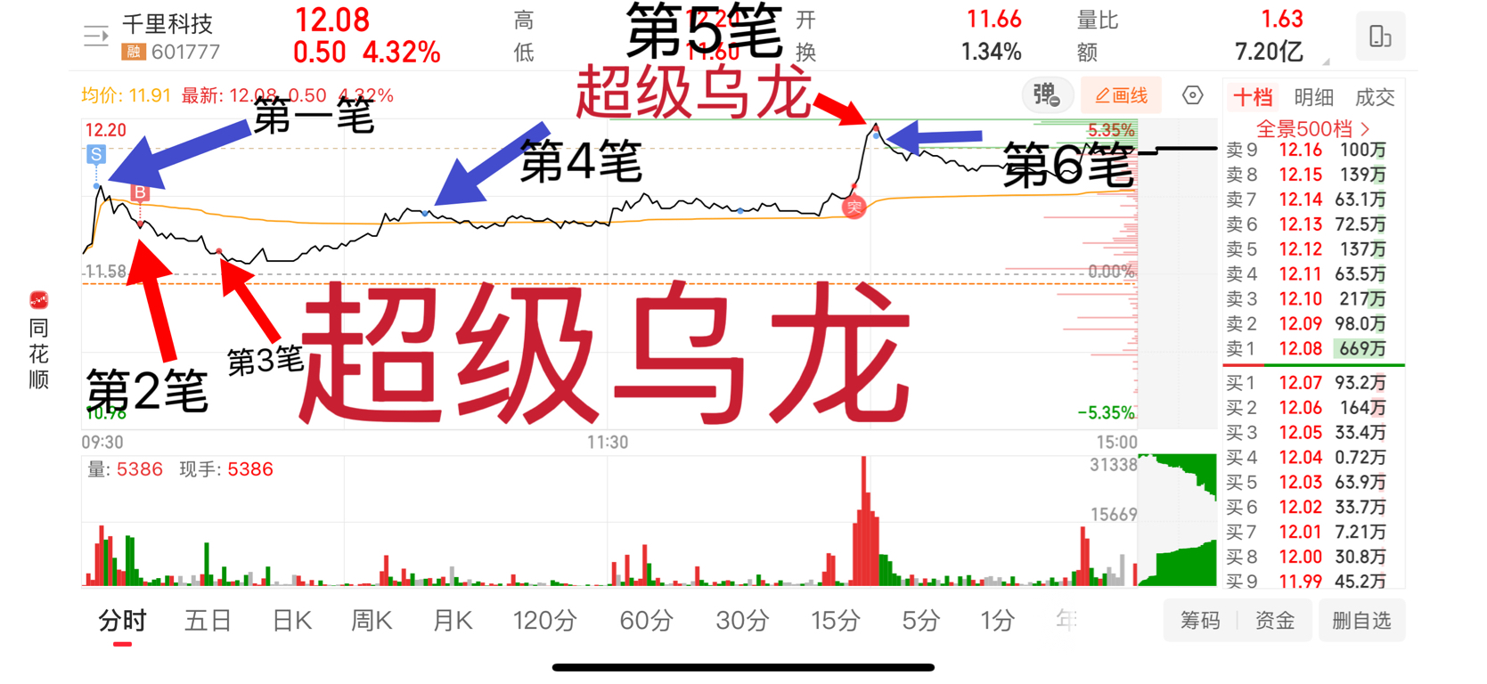 ,整了个超级乌龙,还好我设置的是5000股哦,惊出我一身冷汗!!!我在等红灯,掏出手机一看,12块了,赶紧下单,点了一下5000,然后现价卖,结果一下,脑袋一片空白,红了,这是点成买了,我勒个去,赶紧停车,卖卖卖卖!!!后面的车,按喇叭按疯了