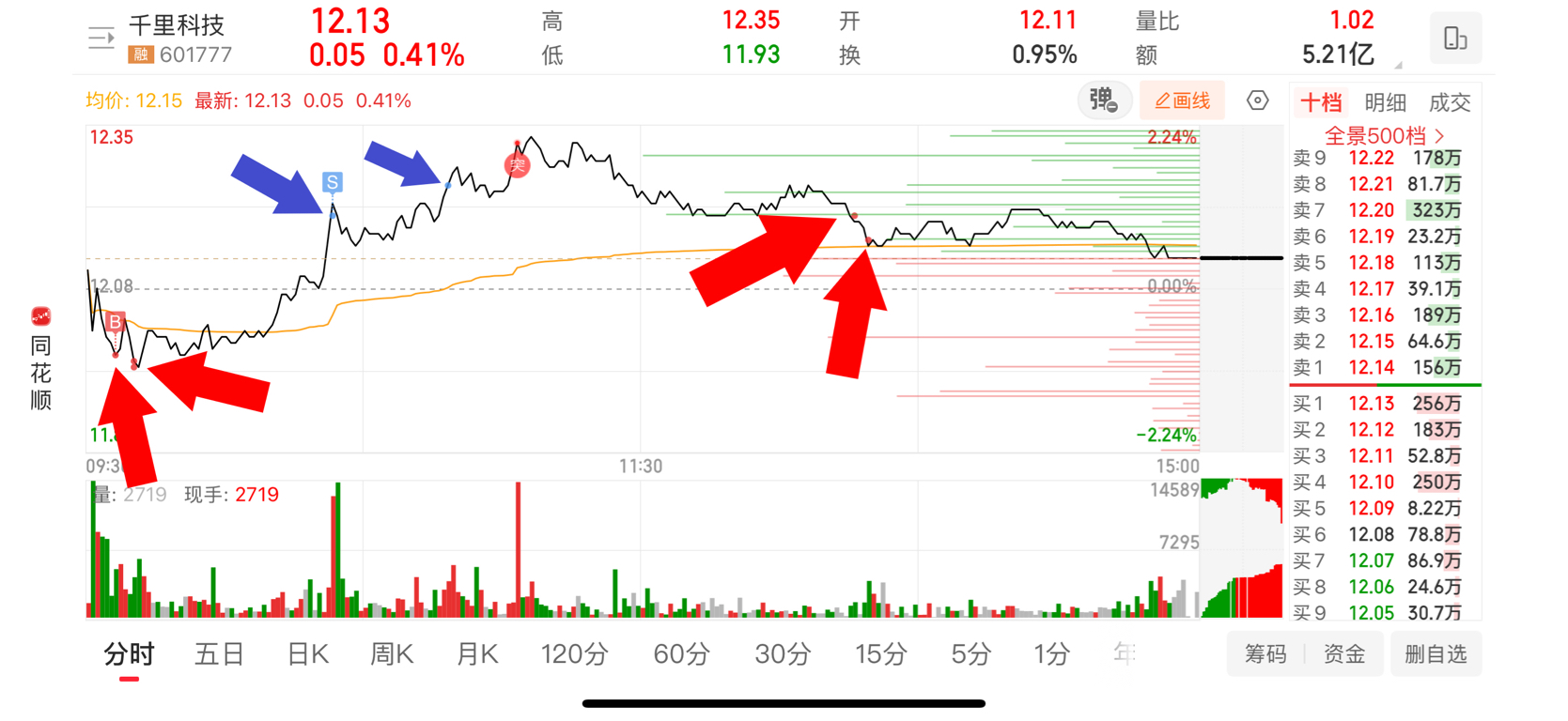 $千里科技(SH601777)$ 今天一共买了四笔,卖了两笔大的,买的最后两笔也是看了等风兄的帖子,干进去了,本来想等再下来一点再买,结果看他12.2都在干,我也干了,不过今天买的四笔都没有我卖的两笔大,稳重一点