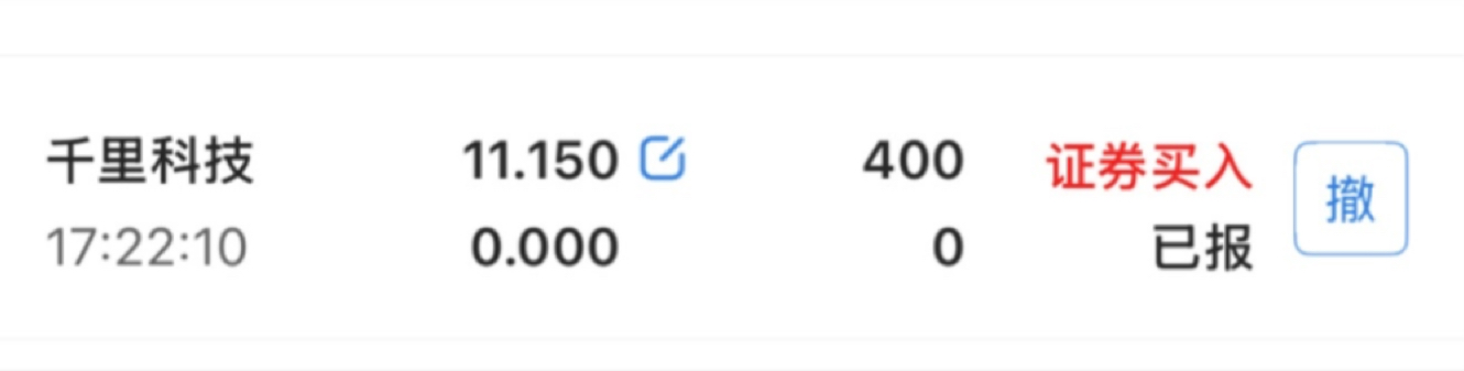 $千里科技(SH601777)$ 昨天挂的没买进,看样子还是有人在护盘的,没跌破支撑
