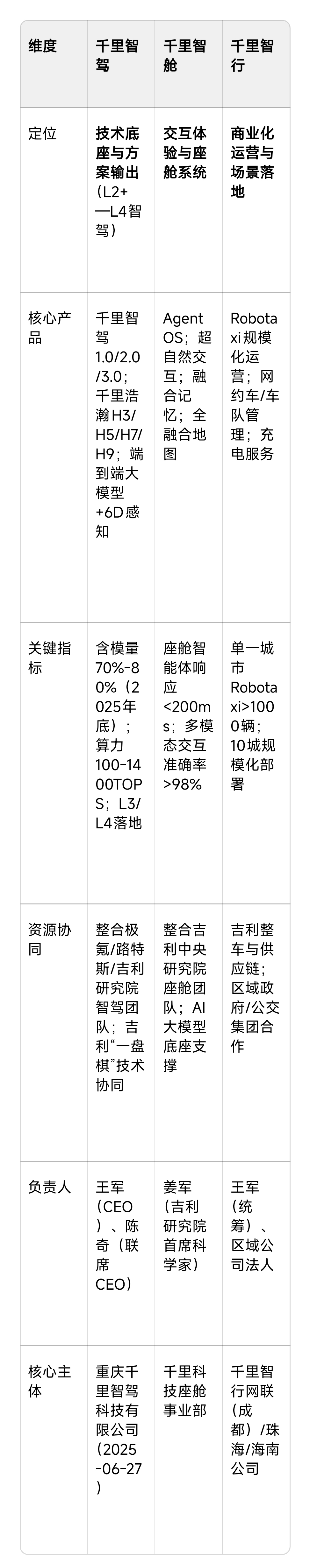 千里科技除了老业务汽车跟摩托车制造外,新业务板块有千里智驾,千里智舱,千里智行,