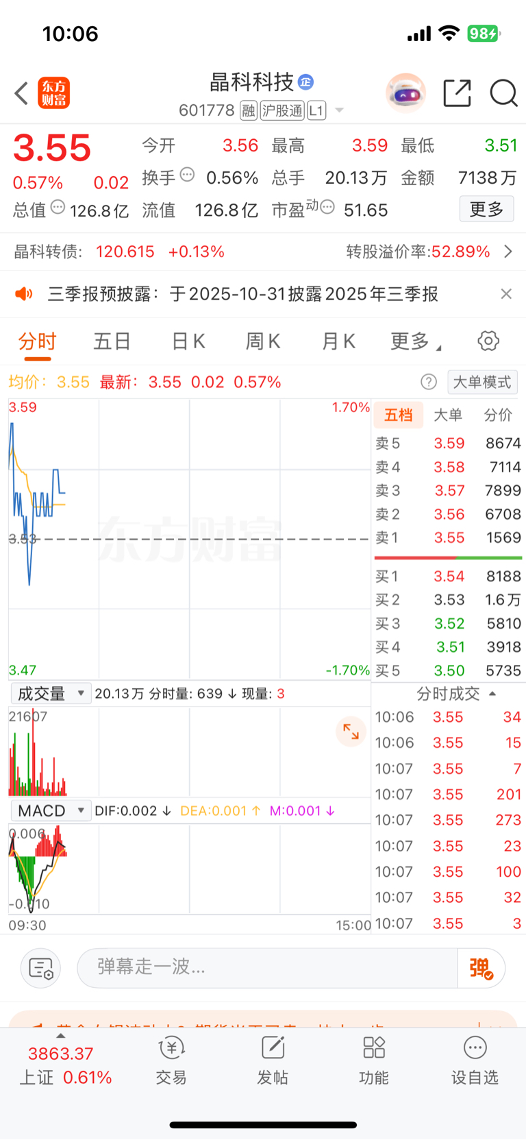 $晶科科技(SH601778)$ 缓慢吸筹,下午会出新高过3.57。不要慌啊
