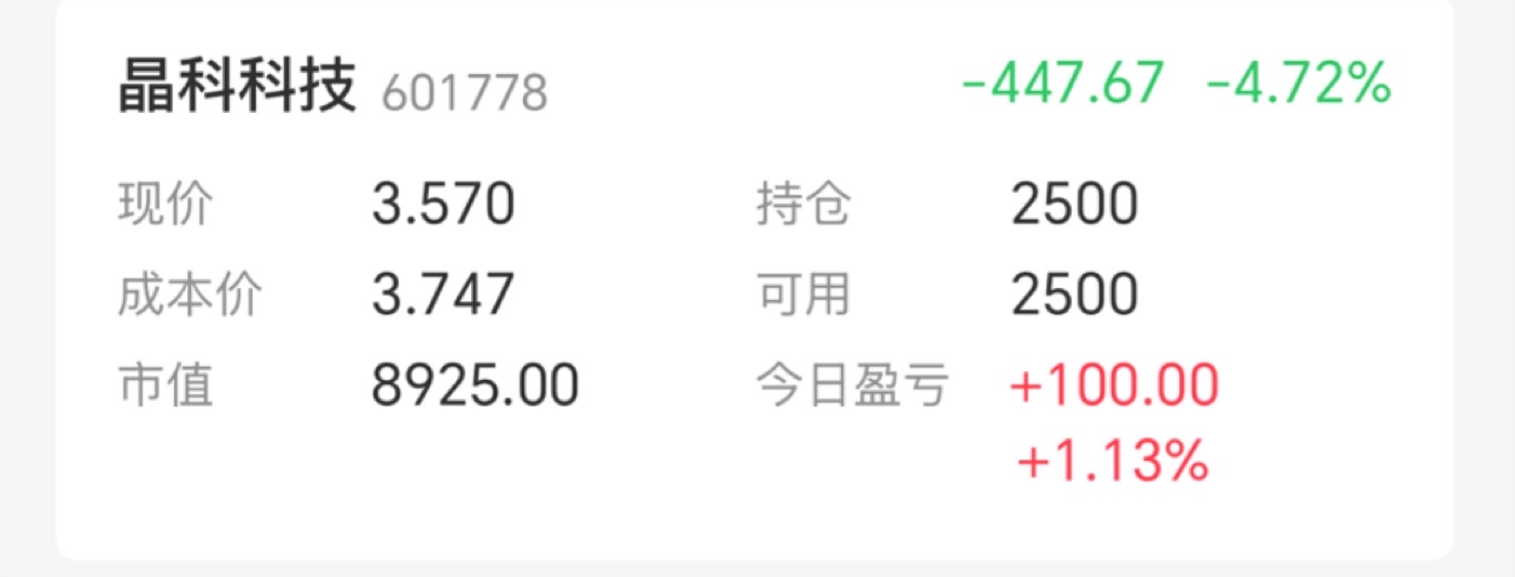 $晶科科技(SH601778)$ 被套了五个点了,加仓还是不操作?
