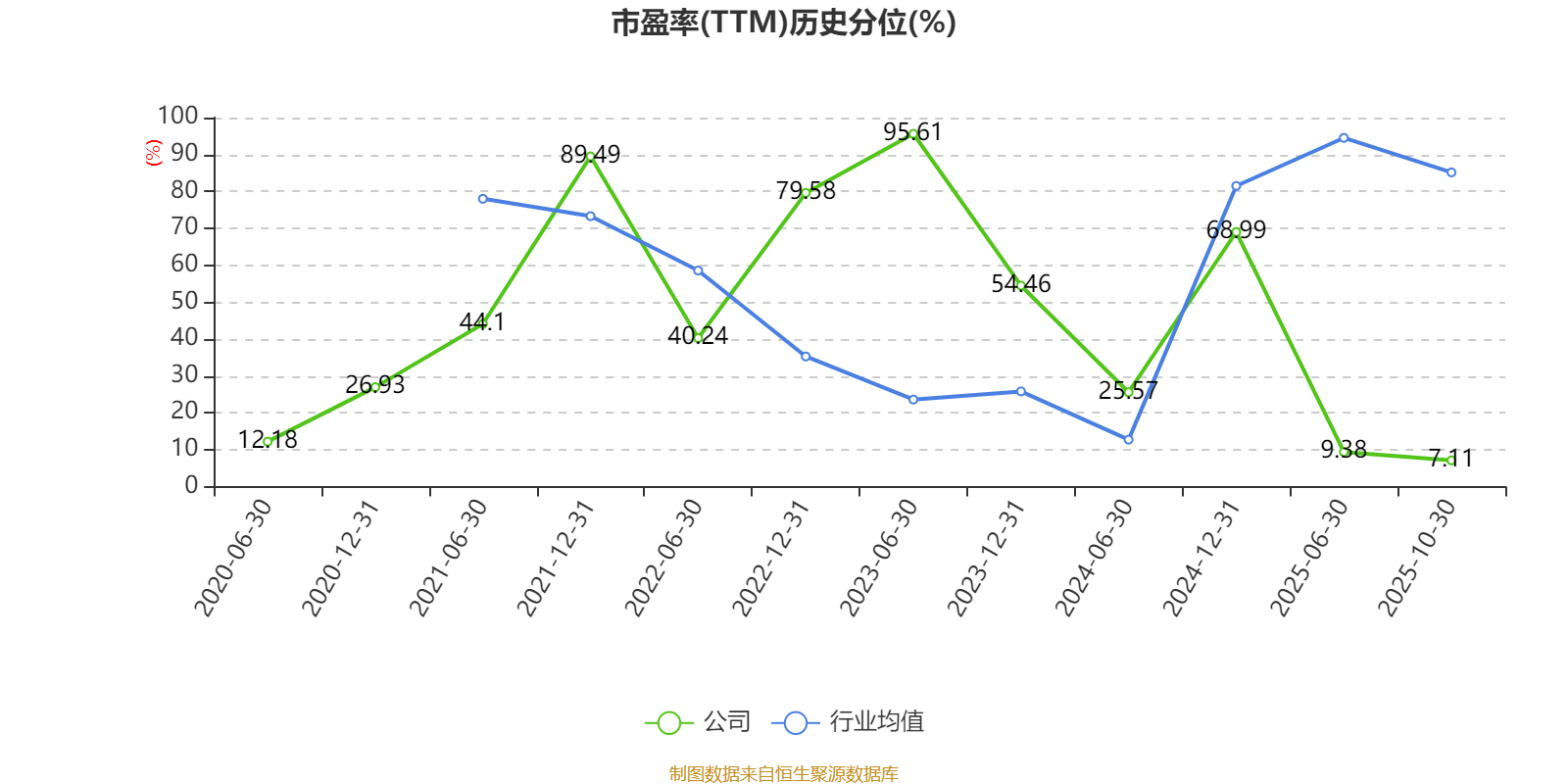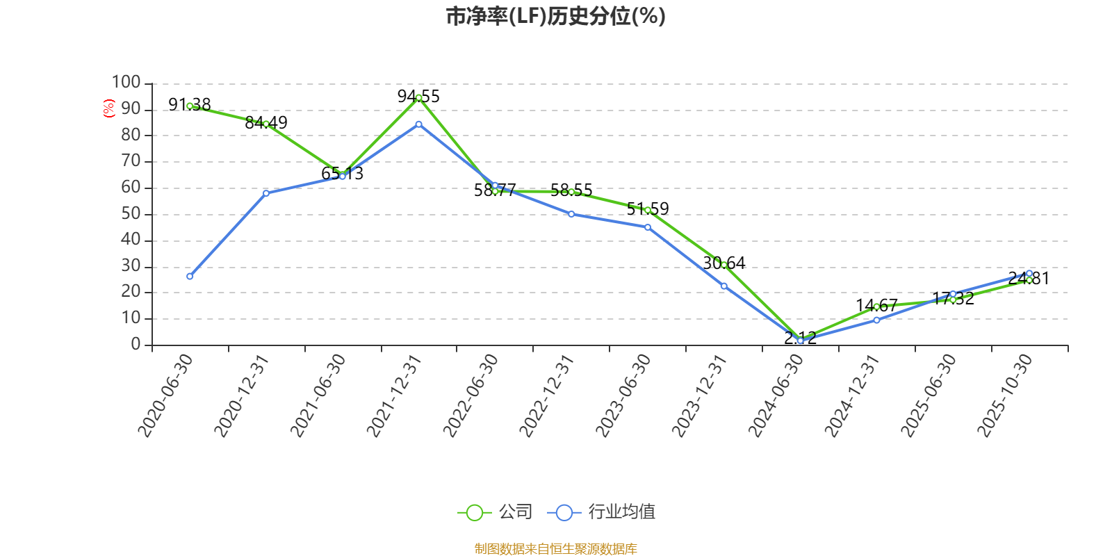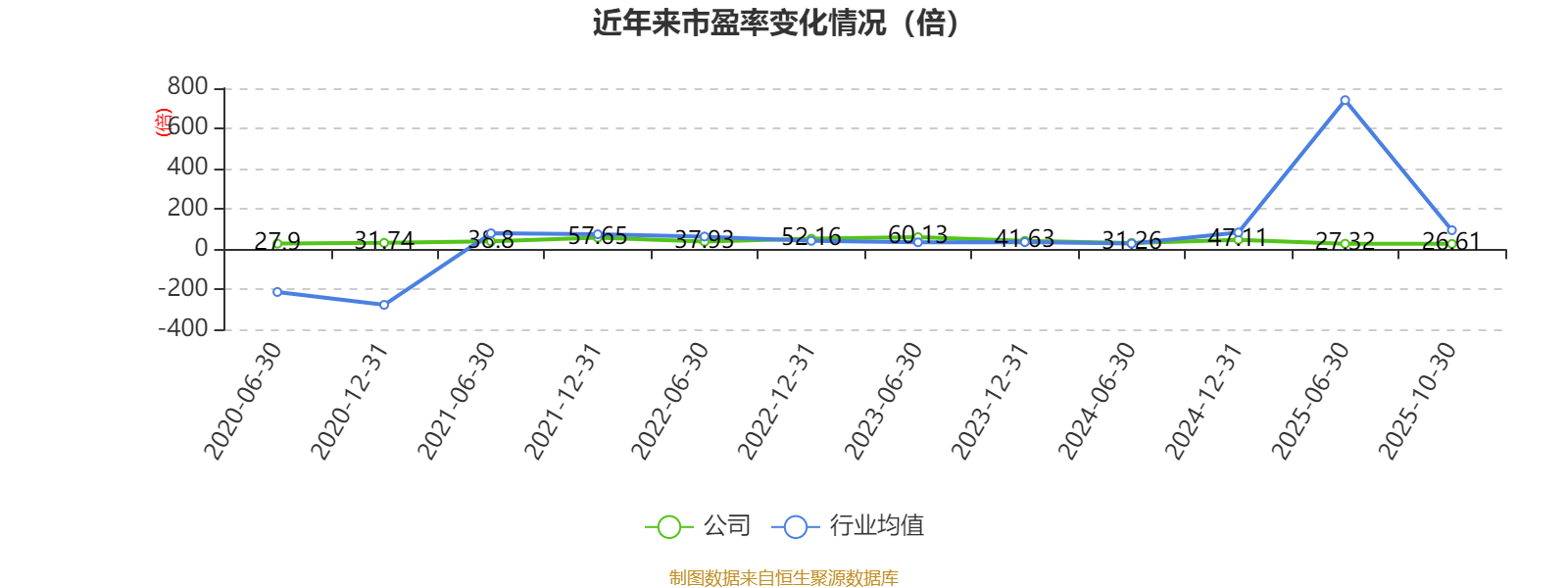市盈率、市净率为负时,不显示当期分位数,会导致折线图中断。