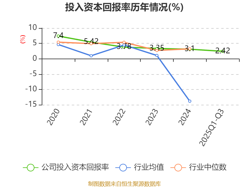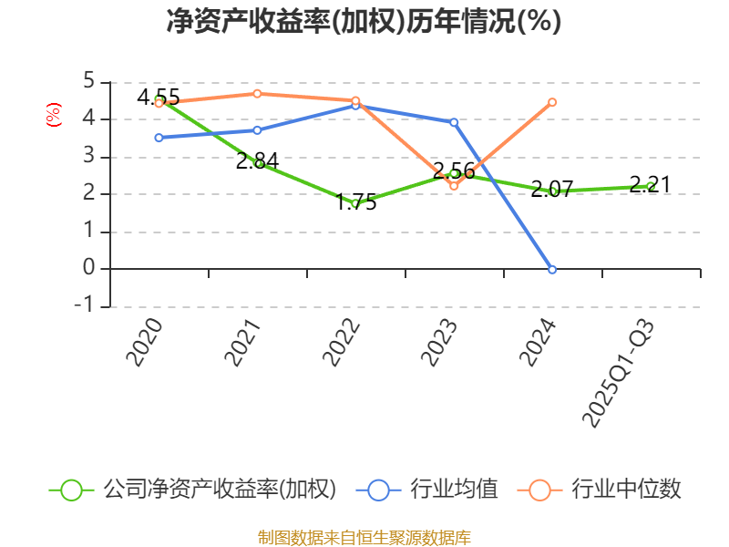 盈利能力方面, 2025年前三季度公司加权平均净资产收益率为2.21%,同比上升0.8个百分点。公司2025年前三季度投入资本回报率为2.42%,较上年同期上升0.48个百分点。
