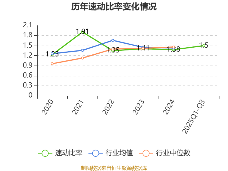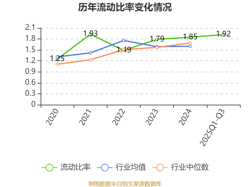 2025年前三季度,公司流动比率为1.92,速动比率为1.5。