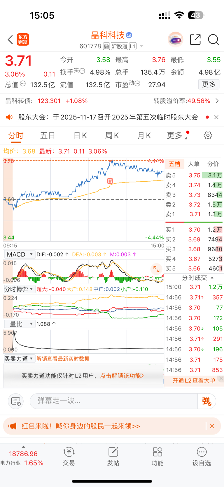 $晶科科技(SH601778)$ 明天逃得掉吗