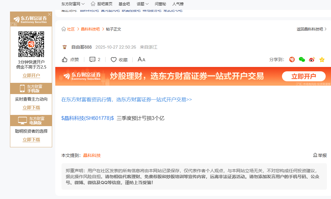 温馨提示: 1.根据《证券法》规定,禁止编造、传播虚假信息或者误导性信息,扰乱证券市场;2.用户在本社区发表的所有资料、言论等仅代表个人观点,与本网站立场无关,不对您构成任何投资建议。用户应基于自己的独立判断,自行决定证券投资并承担相应风险。《东方财富社区管理规定》