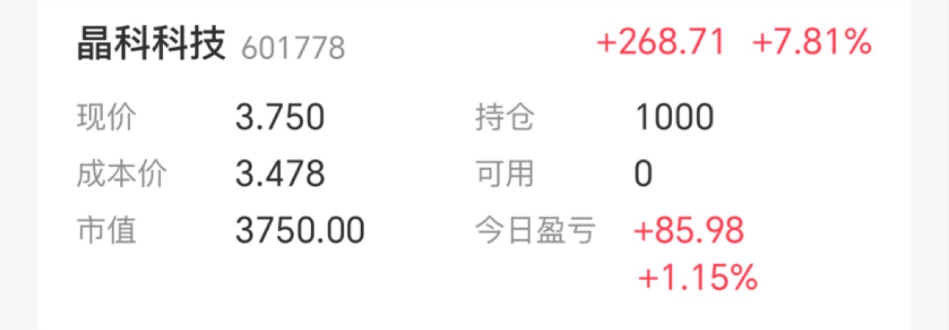 $晶科科技(SH601778)$ 只有 1000 股,挑战 1000 股挣 1 千块
