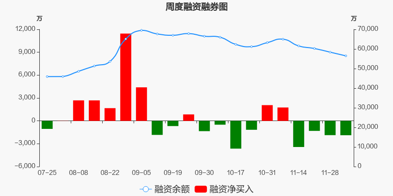 晶科科技本周(2025/12/01-2025/12/05)累计跌幅达0.6%,截至12月5日最新股价报收3.33元。从增量上来看,12月1日至12月5日融资买入交易规模7062.37万元,融资偿还规模8945.87万元,期内融资净偿还1883.5万元。从存量上来看,截止12月7日,晶科科技融资融券余额5.66亿元,其中融资余额规模5.65亿元,融券余额规模81.49万元。