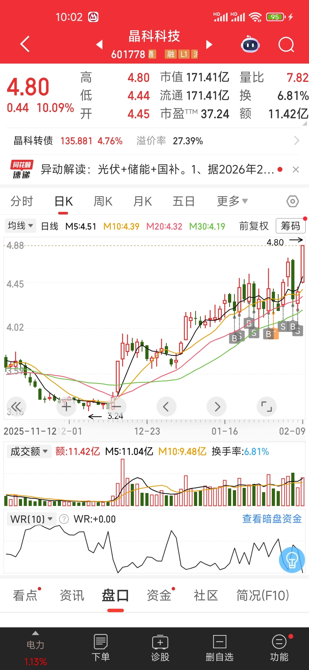 $晶科科技(SH601778)$ 选对了,拿不住