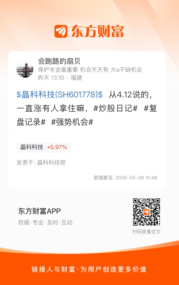 $晶科科技(SH601778)$  从4.12说的,一直涨有人拿住嘛,#炒股日记#  #复盘记录#  #强势机会#