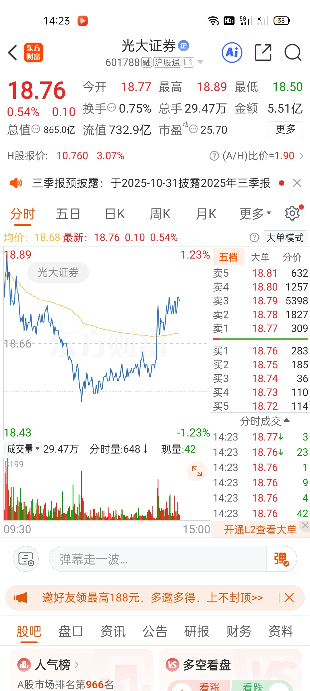 $光大证券(SH601788)$ 老葛快买,马上翻十倍了