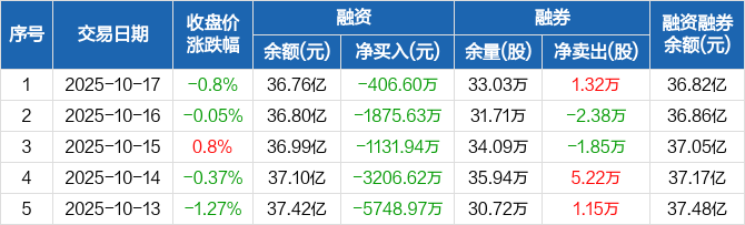 光大证券融资融券信息显示,2025年10月17日融资净偿还406.6万元;融资余额36.76亿元,较前一日下降0.11%。