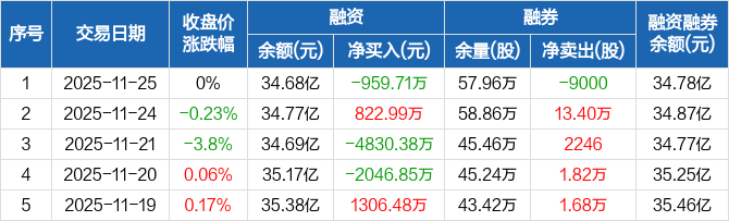 光大证券:融资净偿还959.71万元,融资余额34.68亿元(11-25)