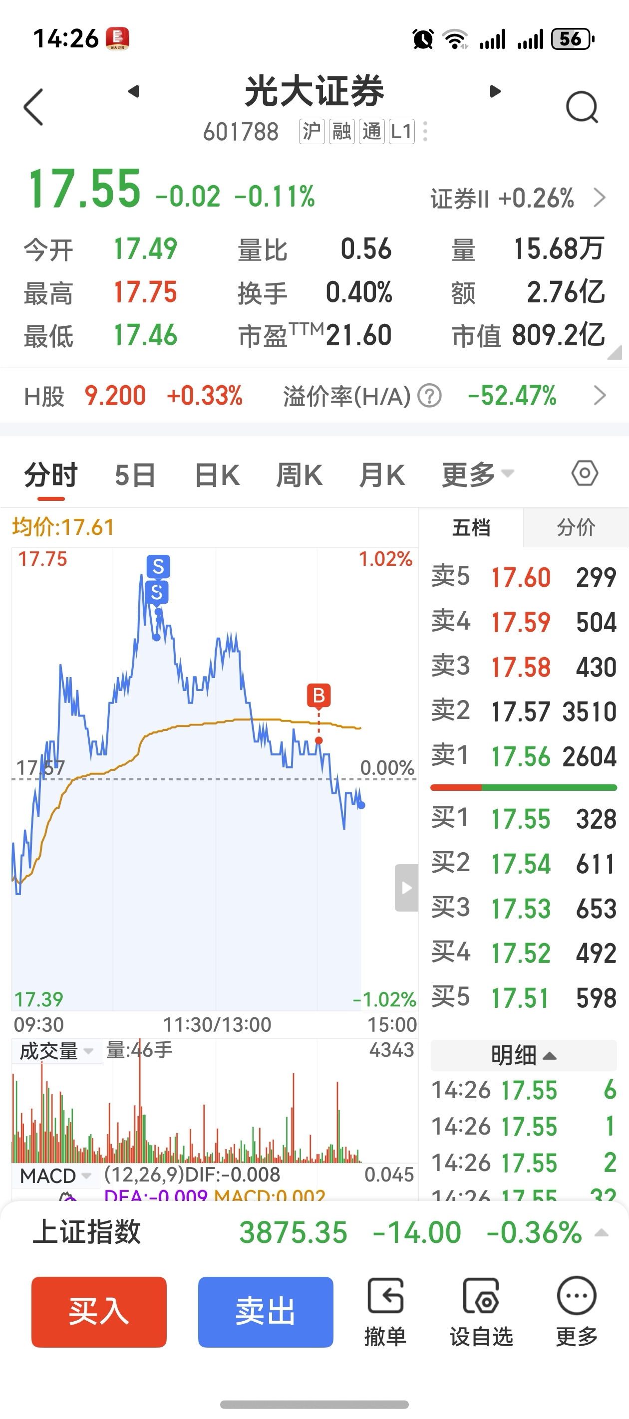 $光大证券(SH601788)$ 你不涨我就做T成本又降了一点