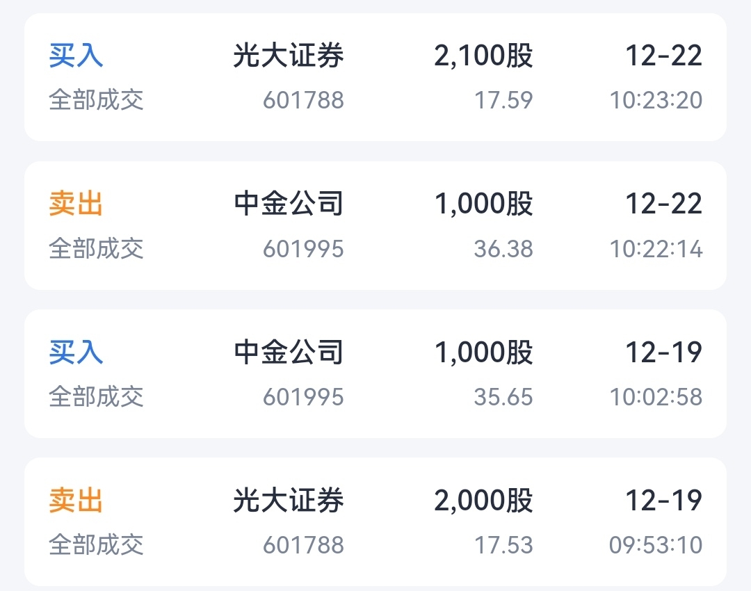 把自己气笑了!上周五从光大分一批仓入中金,今天中金赚2%差价,卖了接回光大然后继