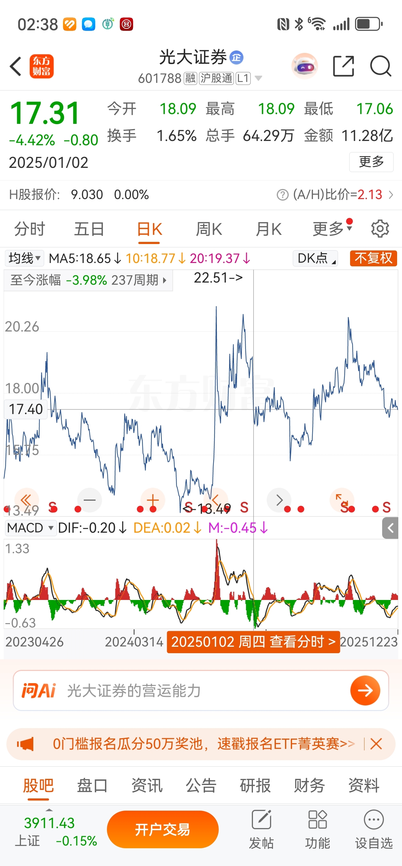 还有几个交易日就走过2025年,光大证券一年的表现也够完美,股价完美到回归1月2