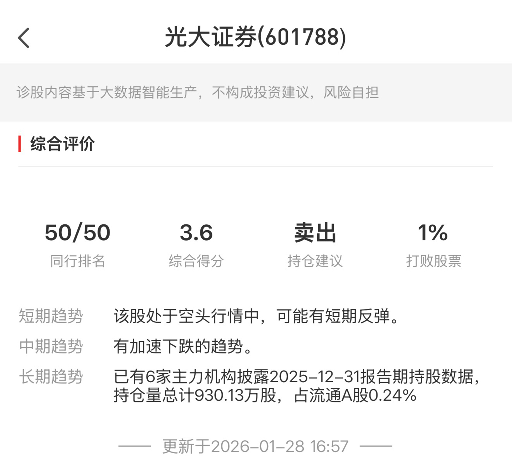 $光大证券(SH601788)$ 同行排名垫底,主力机构前两天少的只有4家,今天是6家,真是错付了