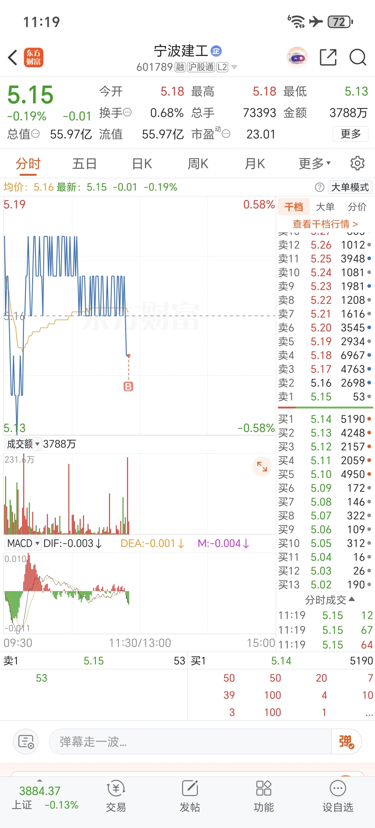 $宁波建工(SH601789)$ 玛德老子10w手挂的好玩的,被主力卖了