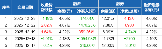 宁波建工:融资净偿还174.01万元,融资余额4.05亿元(12-23)