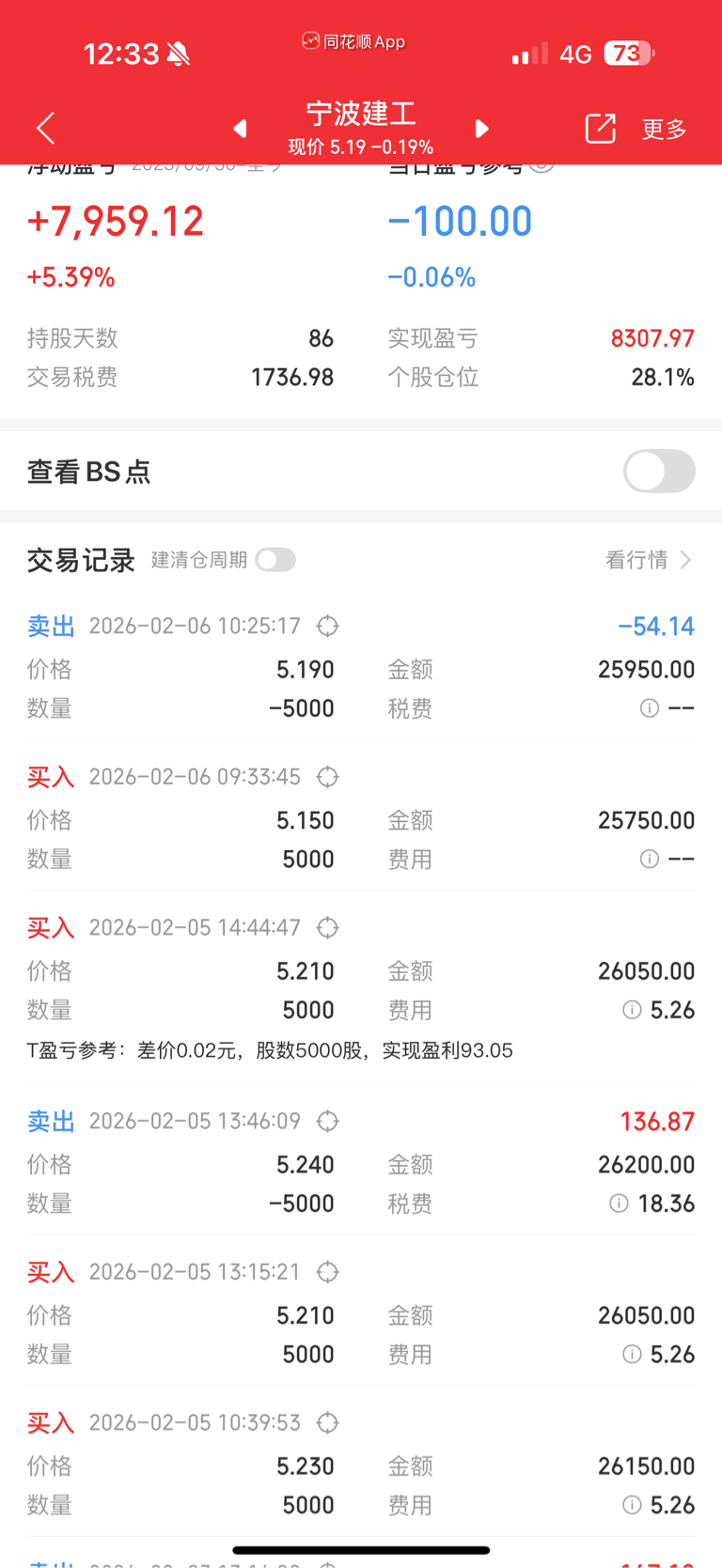 $宁波建工(SH601789)$ 昨天,今天收了200股,出来了100股